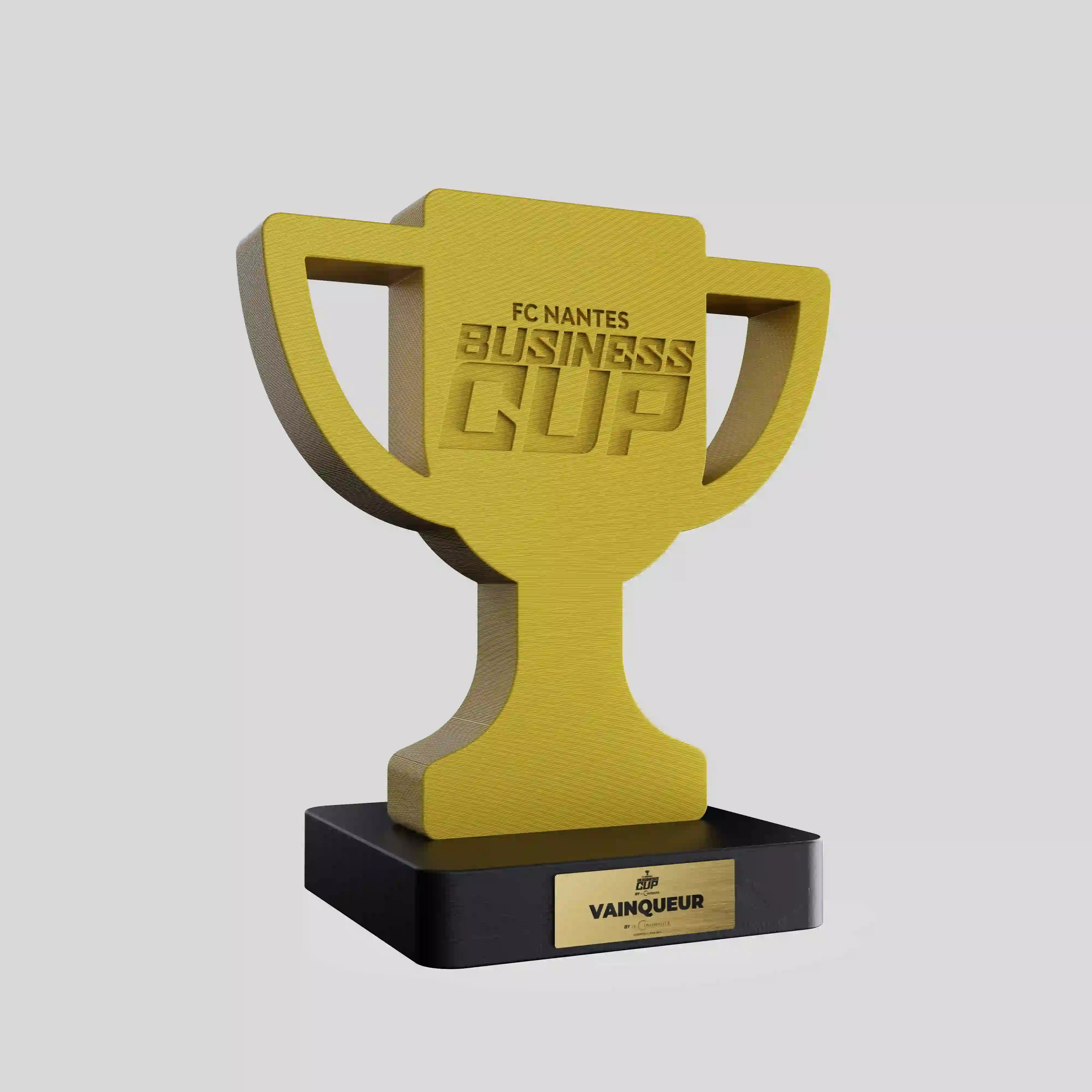 OOOVATION a conçu ce trophée en impression 3D dorée pour la FC Nantes Business Cup, un tournoi qui réunit partenaires, collaborateurs et passionnés autour des valeurs communes du sport et de l’entreprise.
